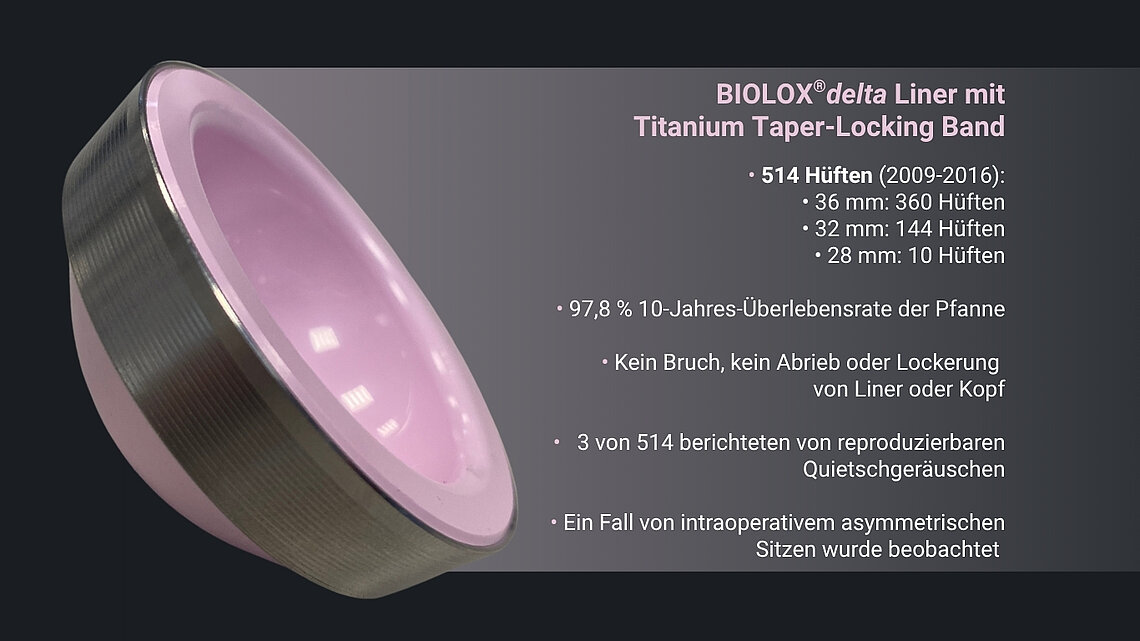 BIOLOX®delta-Insert mit Titanbandverstärkung = niedrige Komplikationsraten, hohe Überlebensraten
