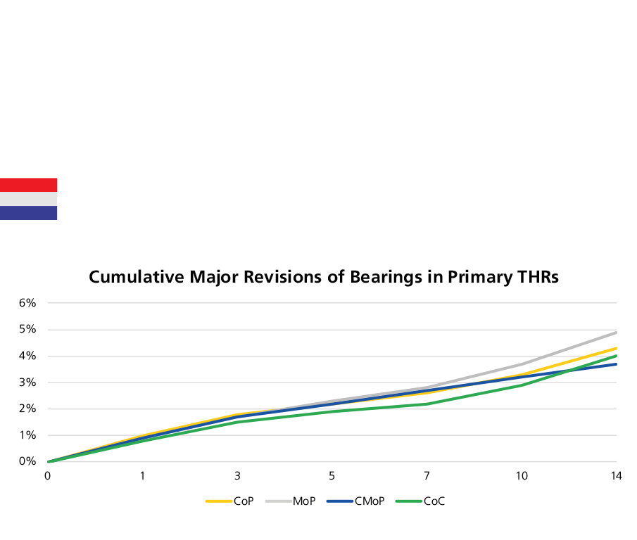 The NZJR shows that CoC bearings have the lowest revision rate with all head sizes in all age groups, despite the use of CoC bearings is declined.