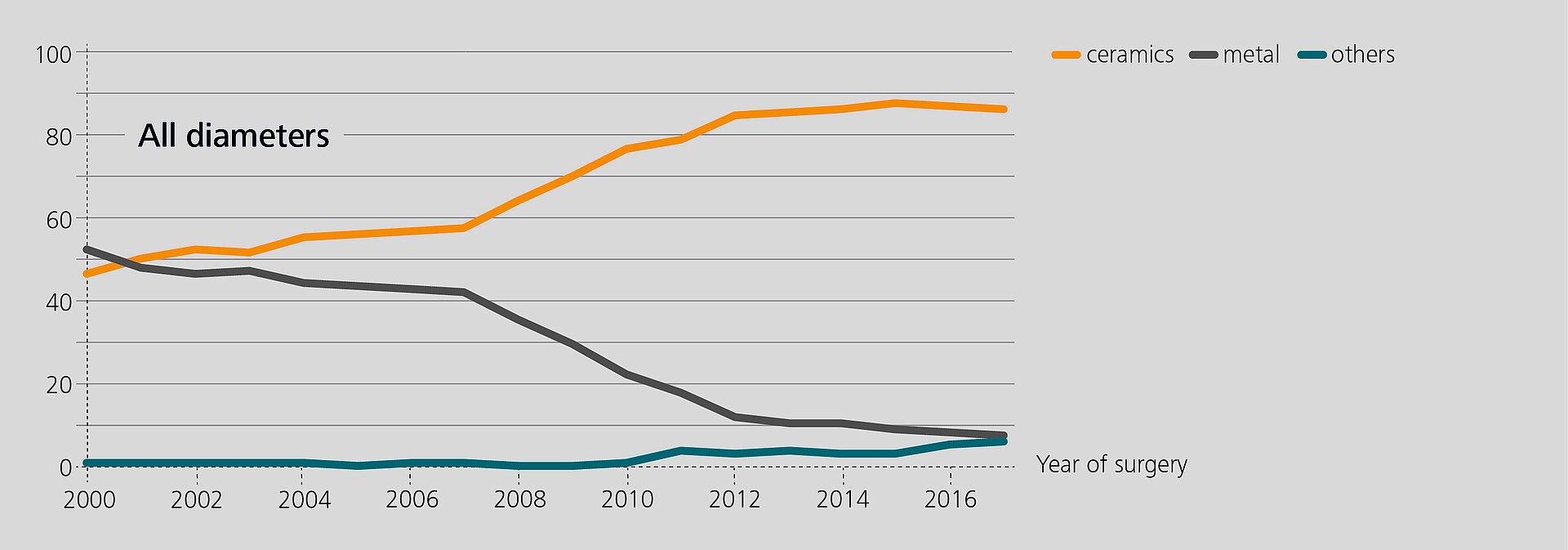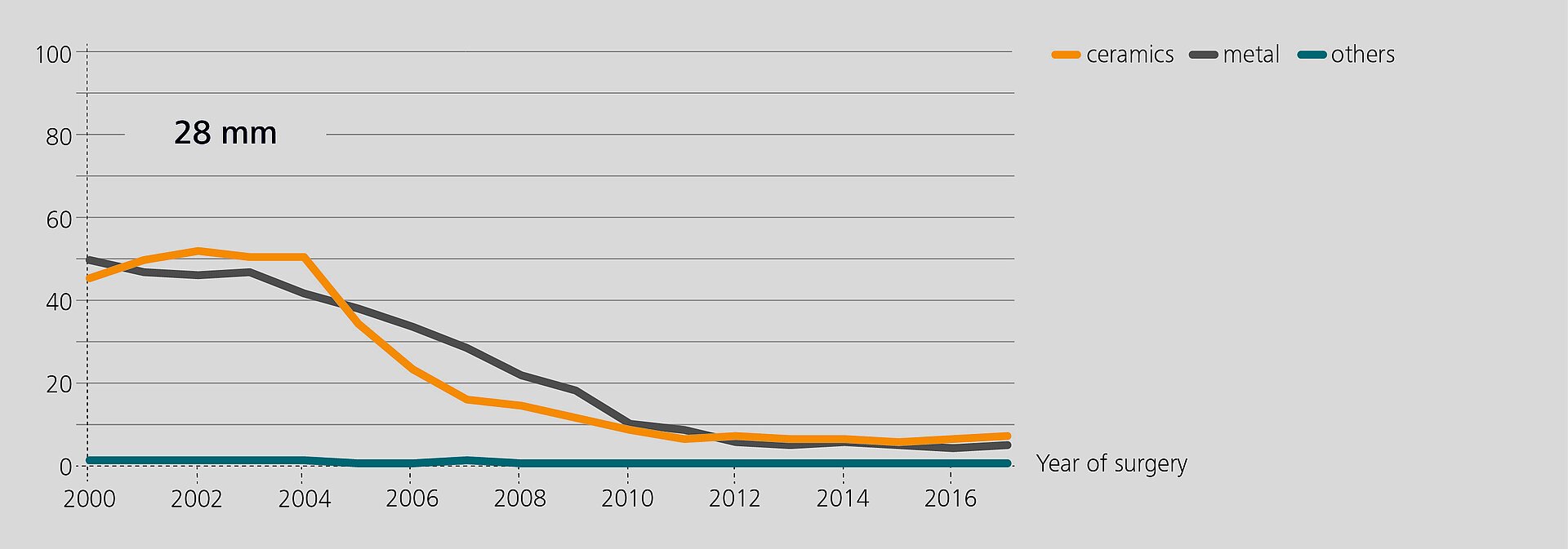 In an observational study based on RIPO data, Affatato et al.2 investigated the impact of adapter sleeves on re-revision rates of hip revision procedures with retained stems. Metal heads were mostly used without sleeves, about two thirds of the ceramic heads were implanted with sleeves.