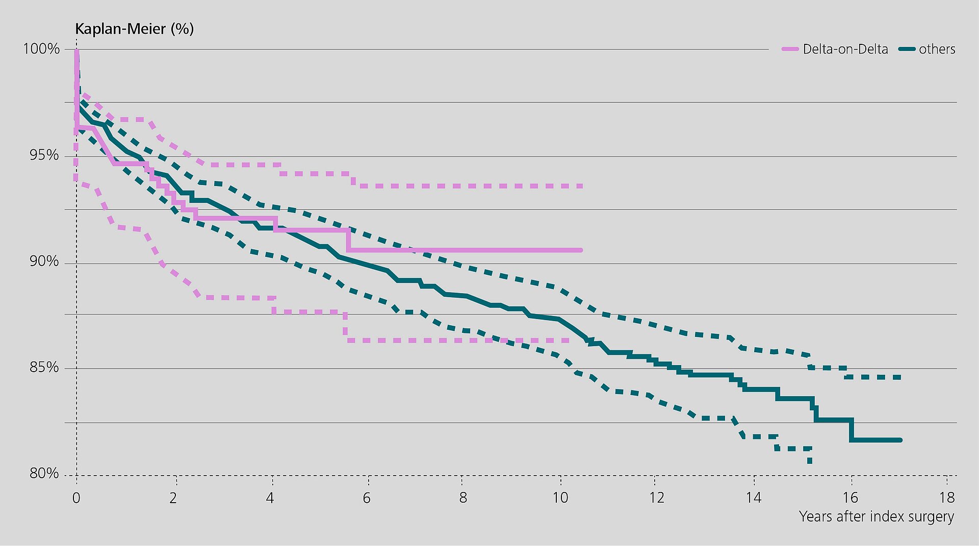 These positive results are supported by a retrospective clinical study from Korea in 2018. Chang et al.4 evaluated the clinical and radiological outcomes of 47 patients (52 hips) treated with Delta-on-Delta in revision surgery with all components exchanged. None of the components required a re-revision at a mean follow-up of 7.3 years. The study reported no ceramic fractures or noise.